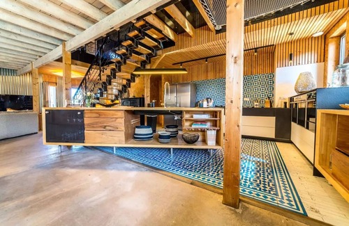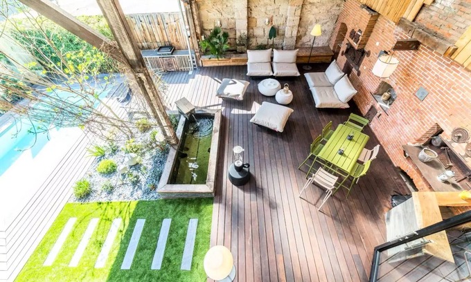 Residence: Located just a 5-minute walk from the heart of the city, this former industrial bakery workshop has been transformed into a dream place to accommodate your big family or group of friends up to 10 people. With its large spaces designed for conviviality and secure swimming pool, it is the ideal place to create precious memories together. Prepare yourself for moments of joy and sharing in this 7 room holiday home; a huge semi-covered terrace, a real oasis of happiness: while the children will enjoy safely in the large swimming pool of 7x3 depth 1m50, you can relax on many armchairs and deckchairs. Family meals will have a special flavor thanks to the plancha and the friendly tables installed in the sun. A spacious and bright interior to meet.