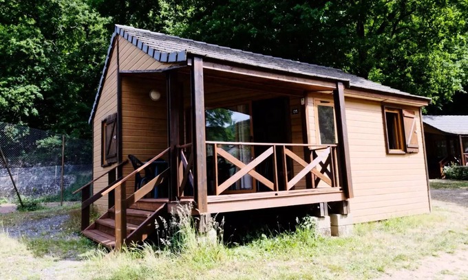 Accommodation: Village of Spontour 9 km from Soursac, located on the banks of the Dordogne, on the hold of the dam of Chastang. 1 chalet for 4 people. 2 bedrooms (2 beds 90, 1 bed 140), living room kitchenette, Senseo, television, fan, electric oven, microwave, electric heating, 1 electrical outlet and 1 water faucet outside the chalet, washing machine common to school cottages. Baby facilities on request (bath, high chair and umbrella bed).The price includes: Electricity HeatingThe price does not include: Bed linenToilet linen LinenHousehold at end of staySupplement per animal/day : 3€ Small comfortable cottage by the river. Price Includes: Electricity Heating Price Not Included : Bed linenToilet linen LinenHousehold at end of staySupplement per animal/day : 3€