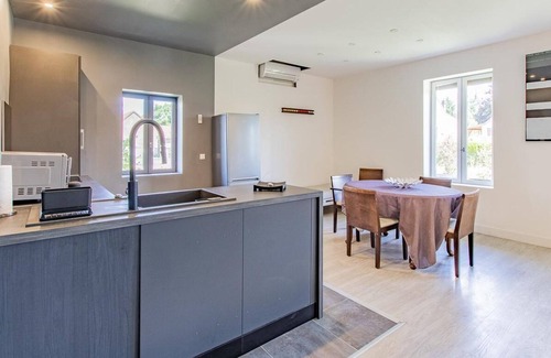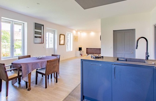 Belgian by birth & Burgundian by adoption, Dominique welcomes you to an authentic, traditional 19th century Bressanne farm, completely revisited into a resolutely contemporary resort, located in the heart of a small typical village. Nestled in the countryside between Bresse Bourguignonne & Chalonnais, the only town to bear this name in France, Baudrières has an exceptional leisure center (unusual & rare baseball field, football field, tennis court, basketball court, children's playground , sports & health trail….), a listed Romanesque church dating from the 11th century & a relaxing landscaped aquatic site (Étang de la Verne), both a renowned fishing pond and a relaxation & walking area (Étang de la Verne), both a renowned fishing pond and a relaxation & walking area (Étang de la Verne). preserved ecological wetland with educational trail & picnic area). Pleasant surrounding environment with varied landscapes, combining unspoiled nature, viticulture & agriculture, between vineyards, plains of bocage meadows, bucolic ponds, rivers & beautiful wild forests (to be explored during relaxing walks or bike rides). Spacious, comfortable gîte furnished in a loft in the countryside spirit. Sober & neat contemporary style mixed with the exotic atmosphere of an old country residence. Cozy, zen & soft atmosphere. Sheltered "Mini terrace" opening onto a private green garden. Composition: Gîte adjoining the owner's accommodation (total independence / architectural feature: the bedroom window opening onto the owner's terrace opens directly onto a wooden "claustra" guaranteeing privacy). Wifi (fiber). Electric heating. Air conditioner. Single-storey gîte on the ground floor: living room-kitchen-lounge (double sofa bed 160x190cm), one bedroom (double bed 160x190cm), bathroom (shower), separate toilet, laundry area. Mini sheltered terrace + private garden + parking. Supermarket 5.5 km. Amenities 8 km.