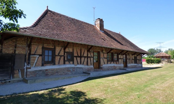 Authentic Bresse farmhouse with character from the end of the 18th century, perfectly preserved & steeped in history (one of the oldest buildings in the village), carefully restored respecting the traditional architecture in bricks & timber frames, nestled on the edge of a bucolic pasture occasionally welcoming sheep (without nuisance). Peaceful residential hamlet nestled in the countryside, a stone's throw from the Seille, the largest river in Bresse Bourguignonne, largely classified as a "Natura 2000 Zone" for its remarkable ecosystem (migratory bird reserve, rare plant species, numerous fish including the famous catfish, wild fauna…) & waterway within superb landscapes (pleasure cruising, canoeing, fishing, hiking….). Quiet environment in the hollow of a delightful rural & natural setting preserved by groves & forests, adjoining the typical village of Saint-Usuge with a landscaped fishing pond (picnic tables & playground), known for its originality 16th century church in the Franche-Comté style. Spacious gîte with good comfort. Warm country cachet mixing traditions & contemporary spirit, combined with careful heritage restoration (conservation of the original beams & mantels). Soft & exotic atmosphere of an old country house. Pleasant lawned garden without vis-à-vis open to the surrounding countryside. Nice clear view. Large terrace (exposed & shaded) nestled on a large gravel courtyard (real natural pétanque ground). Authorized access to the owners' vegetable garden nearby (picking of fresh vegetables possible with their agreement). Composition: Single-storey single-storey house adjoining the owners' house (total independence). Wireless. Electric floor heating + wood stove. Kitchen, living room, 2 bedrooms (double bed 140x190cm / 2 single beds 80x190cm), bathroom (shower), separate toilet. Garden + terrace + private parking. All amenities 7 km.