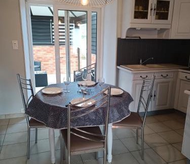Gîte l'orée de la forêt légendaire in Néant-sur-Yvel offers two bedrooms and a bathroom. The property features a fully equipped kitchen, washing machine, and free toiletries. Guests can enjoy garden views from the terrace and outdoor seating area.Outdoor Amenities