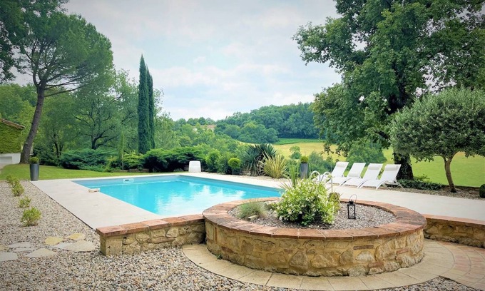 Dans le Sud-Ouest, à 15 km d’Agen, de son célèbre Pont-canal, de son musée des Beaux-Arts, des parcs Walygator et Aqualand, et de nombreuses activités touristiques, se dévoile Saint-Caprais-de-Lerm, petit village des coteaux de l’agenais. Ce dernier abrite un petit trésor, le gîte de la Fontarelle, posé sur une propriété privée verdoyante et vallonnée de 6 ha, au pied de laquelle sillonnent des circuits de randonnées. Isabelle et Vincent, les maîtres des lieux, vous ouvrent les portes de cette maison agréable, indépendante, de plain-pied. Vous apprécierez la piscine, totalement privée, ainsi que sa terrasse couverte, dominant la campagne. Le lieu idéal pour faire rimer bains de soleil et bains de nature.