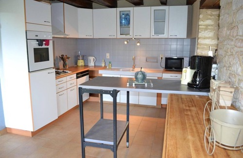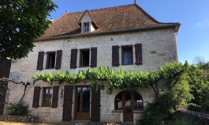 Typical Causse Lotois holiday house with its exposed stones, its souillarde and its fireplace. You will appreciate its authenticity. Situated in a quiet and wooded environment. Propitious for moments of relaxation at the edge of the private swimming pool. This gîte is comfortable and ideal in all seasons to welcome a group of friends or a large family. Ideally placed around many sites of the Lot (Rocamadour, Padirac, Figeac, Saint Cirq-Lapopie...). Places where you can discover the Lot gastronomy, castles as well as amazing landscapes. On the ground floor, living/dining room, fitted and equipped kitchen, boiler room with washing machine, bathroom, separate toilet. On the 1st floor, 3 bedrooms ( 2 beds 1.40m, 1 bunk bed 0.90m, baby bed). On the 2nd floor, 2 bedrooms (2 beds 1.40m) with electric convector heaters, shower room with toilet. Oil-fired heating and wood stove. 1/2 enclosed land. Swimming pool, table tennis table. Wifi access.