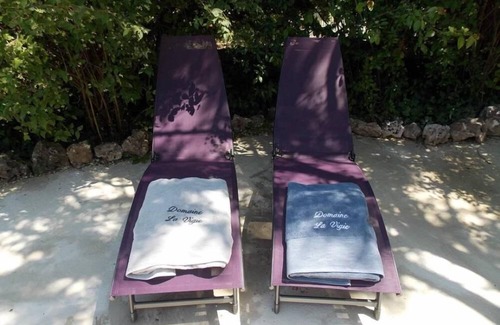 In a very quiet environment, the gîte has been completely renovated with careful decoration and partially integrated into the rock. LA VIGIE on the heights of Pont Saint Esprit is ideally situated for visiting Nîmes, Uzès, Pont du Gard, Anduze, the caves and Aven de l'Ardèche, Vallon Pont d'Arc cave, Crocodile farm, villages from the Drôme Provençale (Château de Grignan), Wine Route, as well as the Vaucluse with the ancient theater of Orange, the city of the Popes and the Pont d'Avignon.