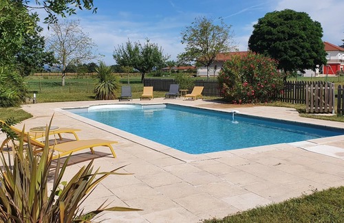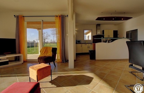 In the heart of Bresse, at the gateway to Burgundy, 16 km from Tournus, the Gîte 'Les 3 Rivières' can accommodate 6 people thanks to its 3 bedrooms. This air-conditioned (solar panels) independent and single-story house is on a closed property with a private swimming pool 11.00 x 5.00m and accessible only in summer. Through a secure gate, you will access a courtyard in front of the main door. The entrance to the gîte opens onto an entrance hall opening onto a large, very bright living room including a fully equipped kitchen and open to the living room and lounge. In the extension, a corridor leads to 3 bedrooms. The first bedroom is equipped with a double bed (160x200), the second bedroom in blue tones and the third with touches of gray are equipped with two single beds (80x200) each. A dressing room to store all your belongings is at your disposal. A bathroom with a corner bathtub and shower, as well as a separate toilet, complete this space. You will have access to a laundry room with all the necessary equipment and storage space. This cottage, with its modern and refined decor, has terraces as well as a garden area leading to the swimming pool (with a fence). Electric heating. Whether you're stopping over or staying longer, many activities await you near the cottage. You can discover the region with its architecture, its gastronomy, and its vineyards. To relax, recharge your batteries, or even explore the Voie Bleue from Pont-de-Vaux, take the path that borders the canal, for a bike ride or a walk.