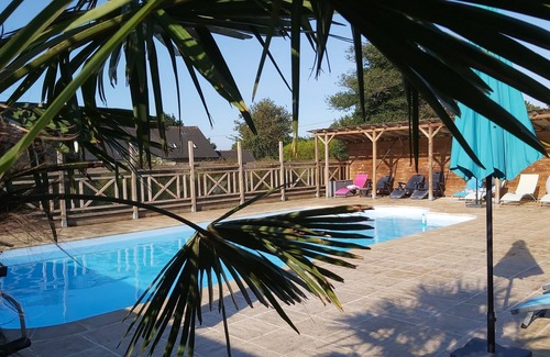 - Enjoy a calm and restful place, in a green setting, and offering spacious and comfortable rooms, a playground for children and a large heated swimming pool;