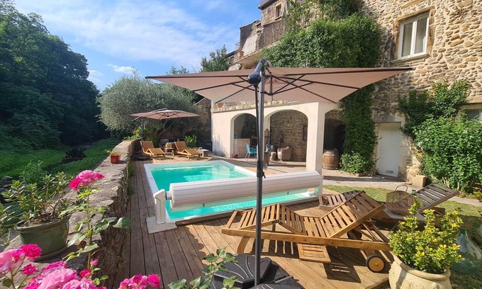 Come and recharge your batteries and reconnect with the surrounding nature on our property located in the heart of the village. It includes 2 buildings, 3 gîtes on floors, 6 bedrooms including 1 without window for a total of 13 beds (3 beds 140 + 7 beds 90 including 2 bunk beds), 4 bathrooms with WC, 3 kitchens, 3 private terraces, 1 common room with kitchen located on the ground floor. All on an enclosed plot with private swimming pool.