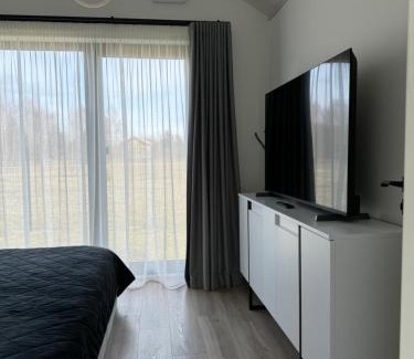 Gabiežezers Holiday House, 30km from Riga offers accommodations in Cena, 21 miles from House of Blackheads and 21 miles from Riga Town Hall Square. This beachfront property offers access to free Wifi and free private parking. Outdoor seating is also available at the vacation home. Providing a terrace and lake views, the vacation home includes 1 bedroom, a living room, flat-screen TV, an equipped kitchen, and 1 bathroom with a shower. Towels and bed linen are provided in the vacation home. This vacation home is allergy-free and non-smoking. A private beach area can be found at Gabiežezers Holiday House, 30km from Riga, along with a garden. Riga Dome Cathedral is 21 miles from the accommodation, while Kipsala International Exhibition Center is 22 miles away. Riga International Airport is 21 miles from the property.