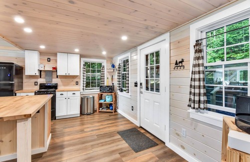 Just beyond the walls of this charming escape, nature welcomes you into a private lakeside paradise. Step outside onto the spacious deck, where you can sip your morning coffee as the mist rises off the lake or enjoy an evening meal grilled to perfection. As the sun sets, gather around the fire pit, sharing stories and roasting marshmallows under a canopy of stars.