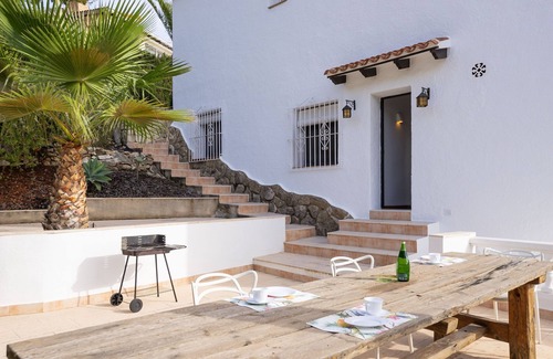 House "Gabriele", 3 storeys. 3 km from the centre of Moraira, in a quiet, sunny position, 3 km from the sea, 3 km from the beach. Private: property 800 m2, well-kept garden, swimming pool kidney shaped (28 m2, depth 120 - 200 cm, seasonal availability: 01.Jan. - 31.Dec.). Outdoor shower, garden furniture. In the house: washing machine. Parking. Shop 1.8 km, supermarket 1.8 km, restaurant 2.2 km, bus stop 3 km, sandy beach "Playa L'Ampolla" 3 km. Please note: car recommended. Not suitable for children under 6 years.