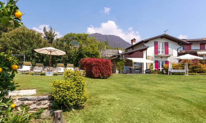 3-room semi-detached house 80 m2 on 2 levels, south facing position. Bright, tasteful furnishings: living room with open-hearth fireplace (only for decoration), satellite TV, radio, CD-player and DVD. Exit to the garden. Open kitchen (oven, dishwasher, 5 gas rings, toaster, kettle, microwave, freezer, electric coffee machine) with dining table. Exit to the garden. Shower/WC. Upper floor: 1 room with Dressing room with 1 french bed (160 cm), satellite TV and air conditioning. Exit to the balcony. 1 room with 2 beds, satellite TV and air conditioning. Bath/WC, hydro massage bath. Gas heating. Heating available only from 28.09. to 26.04. Balcony, 2 terraces. Terrace furniture, barbecue, deck chairs (4). Marvellous panoramic view of the lake, the mountains and Monte Legnone (2609m). Facilities: washing machine, iron, children's high chair, baby cot. Internet (WiFi, free). Parking (1 car) at 300 m. Please note: maximum 1 pet/ dog allowed. Private entrance. IT013089C2WXZPSYI4