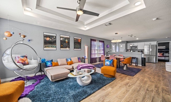 Experience a cosmic retreat in our space-themed sanctuary, perfect for star gazers and urban explorers alike. Nestled just 7 minutes from the vibrant San Antonio Walk, this home offers a celestial escape with comfort that's out of this world. Unwind under the stars in a unique outdoor dome, cozy up by the fire pit, or float away in dreamy, themed bedrooms. Your galactic getaway awaits!
