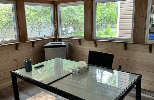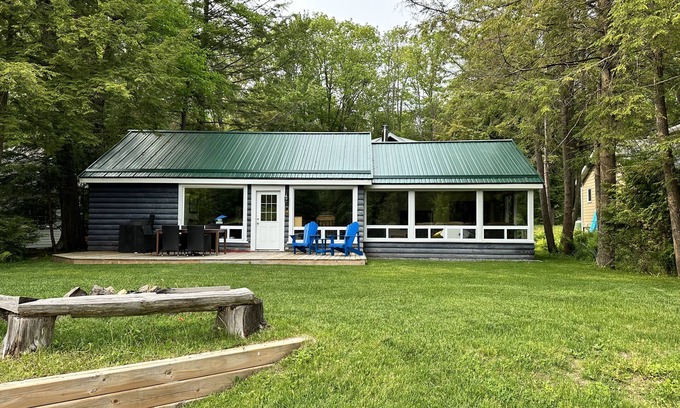 We invite you and your family to make yourselves at home in our cozy 3 bedroom cottage, featuring two docks, a water trampoline, a campfire and amazing sunset views. Fun Fact: A majority of the wood you see inside the cottage and garage has been repurposed from old trees removed from the property during construction! The wood was hand-milled, planed, and crafted with love.