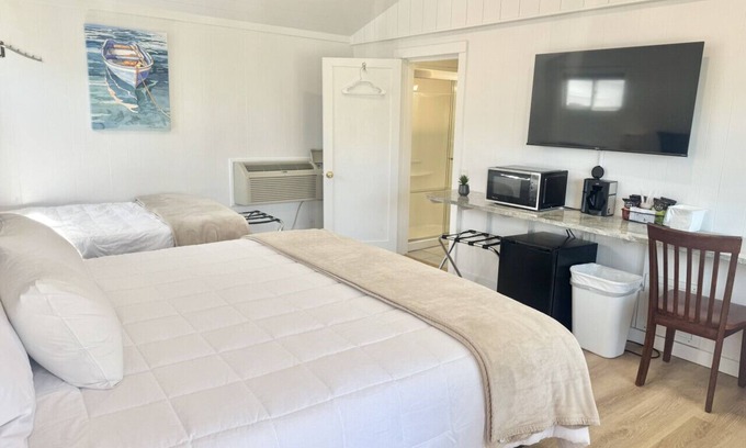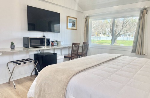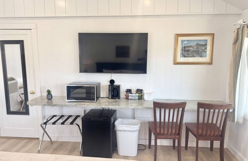 Come see the future of Gallagher's Travels Motel and Cabins! This comfortable room with a king bed and twin bed features a full bathroom, dedicated parking, and amenities including a microwave, refrigerator, free wi-fi, and a Smart-TV. Also included is a large common greenspace with lawn chairs, propane grills, and a private dog-park. An ocean beach, several restaurants, local coffee shop, general store, and a specialty wine and cheese shop are within easy walking distance.