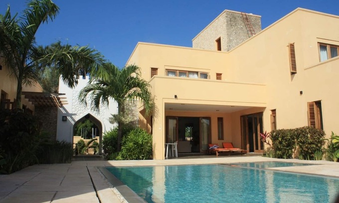 Galu Tulivu is a villa property located in the serene Galu Beach on the southern edge of Diani . It is a beautifully designed property with Swahili and Arabic influences but with modern facilities and tasteful garden. An ideal destination for a perfect getaway with the beach only 10 minutes walk away and Airstrip 15 minutes drive away. Wi-Fi is available. A swimming pool is also available for the exclusive use of residents. The villa is let on a self catering basis.
