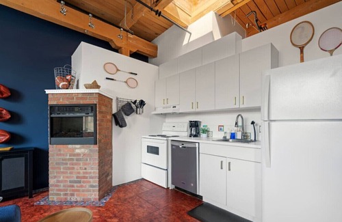 The loft is part of a charming, historical building from 1929 (John Deere Warehouse) that holds a lot of character. With this comes some quirks that are typical of older structures, such as creaky floors, slightly uneven surfaces, or unique architectural features. While we strive to maintain the property to the highest standards, these characteristics are part of the building's historic charm and may differ from modern constructions. We hope you enjoy the unique experience of staying in such a special place, but if you have any concerns, please know this property may not be for you.