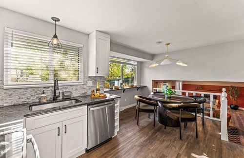 Fun-filled 5BR/4BA Colorado retreat near Red Rocks, Olde Town Arvada & downtown Denver! Enjoy a hidden speakeasy, game room w/ ping pong, pool table, shuffle board & arcade games, plus a private backyard w/ hot tub, firepit, grill & yard games. Perfect for families, groups & Red Rocks trips. Sleeps 14. Fast WiFi, fully stocked kitchen, A/C. Your ideal home base for adventure, relaxation & connection!