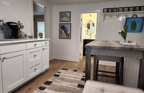 Recently renovated and charming garage apartment located in Country Club Cottage. It is a stand alone apartment above the garage at the back of the property. Easy access to activities such as the hike/bike trail, golfing, a walk through the tree shaded neighborhood, shopping, MSU, Sheppard AFB and the downtown district. Or if you are needing a little R&R kick back and enjoy the flat screen TV to watch YouTube TV, Netflix, Amazon Prime, Paramount+ and more. Great for a quick business trip, weekend get away, a place to stay when visiting your college student or the HHH Bike Ride. Please note that pets are not allowed and is a non-smoking apartment. If you must smoke please use the adjacent sitting area.