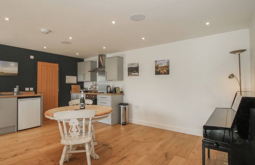 Garden Cottage offers an open-plan living space with a kitchen including an electric oven, hob, microwave, fridge, dishwasher, toaster, kettle, and coffee maker, plus a dining and sitting area with Sonos sound system and books. There's also one double bedroom with a study area, and a shower room with walk-in shower, basin, and WC. Outside, enjoy a private garden with lawn, patio, gravel, furniture, and an uncovered pond. Off-road parking is available. Within 1.9 miles is a shop, and within 1.1 miles, a pub. Sorry, no pets or smoking. Superfast WiFi, fuel, power, bed linen, and towels are included. Escape reality with a stay at Garden Cottage. Note: No TV at this property. Note: Pond in the garden is uncovered, please take care.