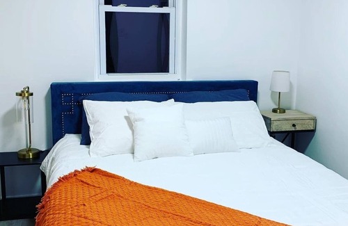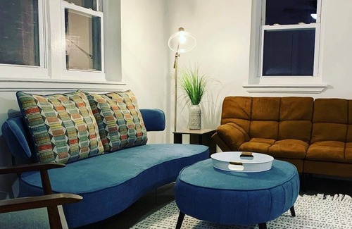 The home is furnished with one queen-size pillow top bed in bedroom 1, one queen-size bed in bedroom 2 and a Serta memory foam sleeper sofa in the living room. (We'll let you draw straws to decide who is sleeping where—ha!) The optimal number of guests would be 1-5 people. But we can definitely fit 6 if you're willing to squeeze and sleep on the mid-century modern couch!