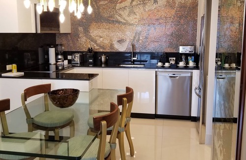 The sleek modern styling of the property feels fresh and cozy at the same time. The exquisitely appointed villas will make you wish you could stay permanently. The two bedroom villas comes with three full bathrooms so that no one ever has to wait. A well appointed kitchen allows for the opportunity to prepare complete meals in should you desire to stay in and relax. Every amenity is afforded to you and it is done so in style and elegance.