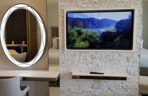 An incredible choice for families and groups of friends wishing to create unforgettable memories together. This two bedroom suite can sleep up to six people in style and comfort, where privacy and luxury are shrouded in timeless elegance. Here you will encounter fresh, inspiring interior design with ample space for sophisticated basking indoors and out. Then, each to his or her own master bedroom with a stunning contemporary bathroom, plus space for an extra couple or your children on a sofa bed in the living room. The king-size bedrooms have plush ensuite bathrooms with a freestanding bathtub, twin vanities, separate shower and state-of-the-art bidet toilet, which is elegantly partitioned from the rest of the suite by a stylish coral-effect panel.
