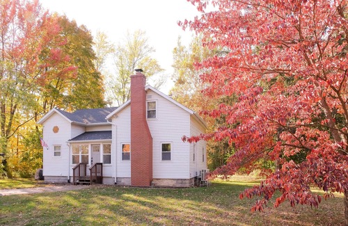 Welcome to “Gast House” a charming little cottage surrounded by mature trees on 2 acres of land. Our three bedroom home is located only 90 minutes from Chicago and a worlds away from the city. This beautiful private rural home is just minutes from fantastic wineries, breweries, restaurants, golfing, antique shops and beautiful Lake Michigan. Also, a short drive to Sawyer, Lakeside and New Buffalo. Our bright cozy home features an open living room / kitchen floor plan. There is one bedroom and bathroom on the first floor, two bedrooms upstairs with a lofted area. We offer a full kitchen with a large stove, dishwasher, microwave, coffee maker, full sized refrigerator and plenty of space for a chef inspired meal. If you prefer to grill we have that too! After a day of fun come home to our basketball hoop & outdoor fire pit. Our indoor fireplace will keep you warm in Fall & Winter. For those that need to be connected we offer WIFI & Smart television with Netflix and Hulu. No need to schlep all your beach supplies. We offer beach chairs, umbrella and a cooler for a day at the lake. Our home is great for family getaways, couples, bachelorette weekends and more. All the beauty and serenity of a small quaint town but close to all that Michigan has to offer. Beautiful beaches, kayaking, hiking, and amazing sunsets await you.