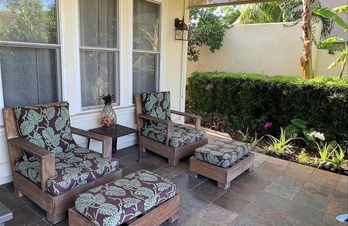 Hoku Lani Beach House sleeps 8 and is spacious for 6, is walking distance to shops, restaurants, grocery stores, live entertainment and more. It is ideal for a family, two couples with children, or a family with grandparents wanting a luxurious living space. The beach house is set back from the street, creating a one of-a-kind large spacious yard and private environment. You can walk everywhere, cook indoors or out and is great for entertaining.