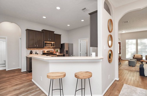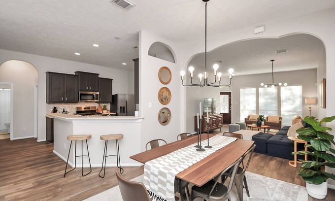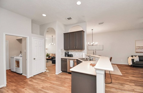 Remodeling Your Home? Relocating to Katy? Discover comfort in our 1-story Katy home, perfect for families during remodels or relocations. Nestled in a secure gated golf course community, with a 30-day minimum stay. Close to La Centerra for shopping and dining, and a bike ride away from the neighborhood park and the Jurassic World Exhibition at Katy Mills Mall. Easy access to 99 & I-10 for trips to Houston. Your home between homes awaits in the heart of the action!