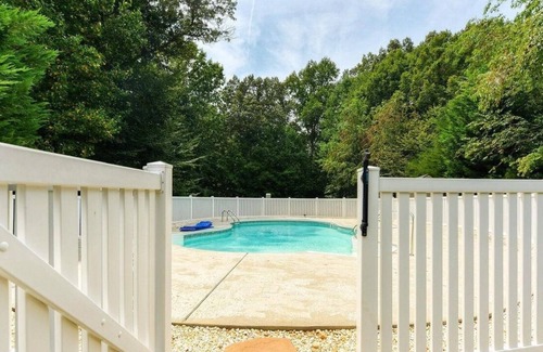 This was a very nice home in a super friendly neighborhood. Great place for multi-generation family with plenty of things to do at the home or nearby. The property manager was quick to respond to all questions and the check-in and check-out could not have been easier. The pool is small but clean and well maintained. Although not pictured, there are some chairs and loungers by the pool. The patio and fire pit area is very nice. And the screened in canopy on the upper deck was a great bonus. There is no lake access. There is a public boat ramp at the nearby Christopher Run campground if bringing a boat. Bikes were great to have in the neighborhood, too. We enjoyed eating at local restaurants Tasty Crab, Vito’s and Tim’s. I’d recommend this home for families.