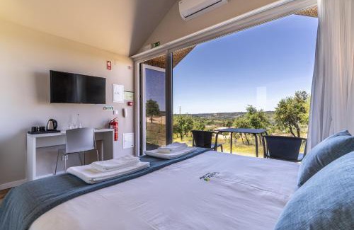 Gavião Nature Village in Gavião provides accommodations with an outdoor swimming pool, a garden, and a bar. The campground offers a spa experience, with its hammam, spa facilities, and wellness packages. There's a sun terrace and guests can make use of free Wifi, free private parking, and an electric vehicle charging station. The campground will provide guests with air-conditioned units with a wardrobe, a kettle, a minibar, a safety deposit box, a flat-screen TV, a patio, and a private bathroom with a shower. At the campground, some units are soundproof. At the campground, every unit includes bed linen and towels. Guests can eat at the on-site family-friendly restaurant, which is open for dinner, lunch, and high tea. The campground offers a variety of wellness options, including a sauna, a hot tub, and yoga classes. For guests with children, the campground provides kids pool and outdoor play equipment. If you like to discover the area, cycling, fishing and hiking are possible in the surroundings and Gavião Nature Village can arrange a bicycle rental service.