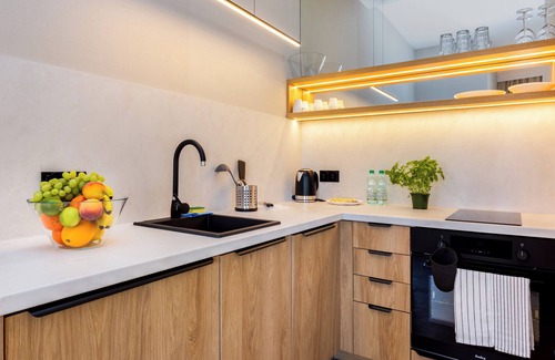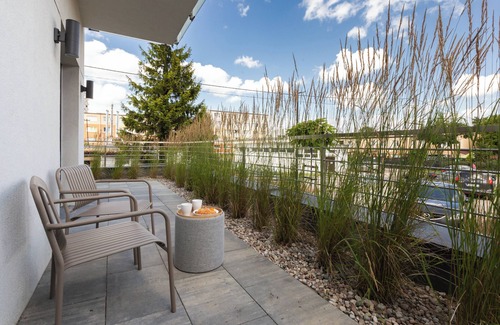 Gdańsk Coastal Escape Apartment #1 is a stylishly designed space offering a comfortable setting for a stay in Gdańsk. It features a living room with a sofa bed and kitchenette, a bedroom with a comfortable double bed, a bathroom, and a terrace where guests can relax and enjoy a morning coffee or an evening glass of wine. The apartment is equipped with a range of practical amenities including: free Wi-Fi, cable TV, iron, hair dryer, fridge with freezer, dishwasher, induction hob, oven, kettle, and kitchen accessories.