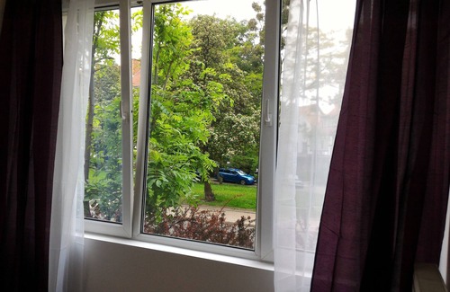 The apartment is bright with large windows overlooking the parks on both sides. Sunny living room in the morning and bedroom in the evening. The neighborhood is very quiet. The best bakery in town is 200m away only. Me being French, that's enough of an incentive!