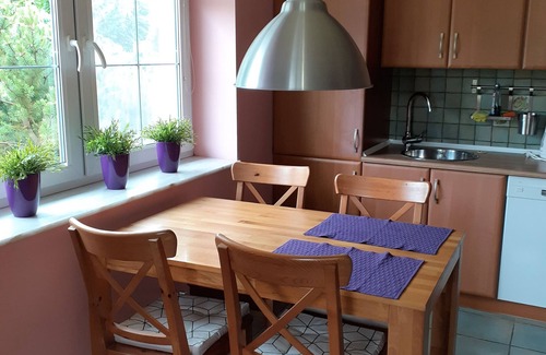 The apartment in a family house with an independent entrance, is located in a small village, in the middle of a forest settlement on the edge of the forest, directly in nearby Gdansk.