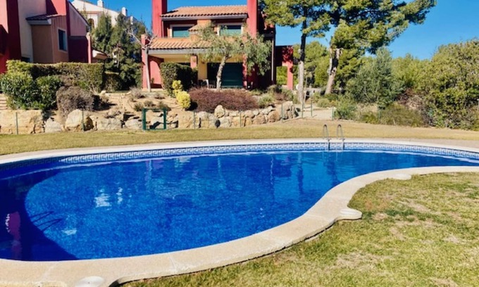 This stylish accommodation is perfect for group trips. Located in the Bonmont Terres Noves development, Golf Club. It has 4 double bedrooms, two of them with bunk beds and two with a double bed. Master bedroom en suite with bathtub. The house has two more bathrooms. Living room with access to the garden with barbecue and views of the golf course. Fully equipped individual kitchen. Private garage with interior access. Central air conditioning. Communal area with swimming pool. Book your holiday in this luxurious development designed for tranquility and rest.