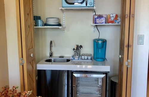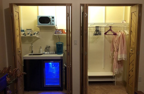 Our home is attached to the Casita but it offers complete privacy. In addition to the two large bedrooms, there is a large sitting room and entry hall with comfy couches and a tv with all channels and high speed internet.