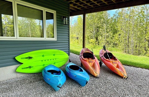 Indoor & outdoor entertainment/activities (bikes, kayaks, paddle board, games, books etc.) and 2 outdoor firepits (1 at the waters edge, 1 by the house), available for your use. Loads of room for parking in driveway. Free boat launch in Wiarton (3 kms). We are happy to welcome maximum 2 pets (ONLY hypo-allergenic, due to allergies).