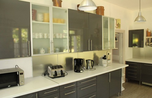 • Large kitchen of 22 m², equipped with recent Ikea furniture: five-burner gas cooker with oven, dishwasher, microwave oven, electric oven, large fridge with freezer, coffee maker, toaster, espresso machine , electric kettle.