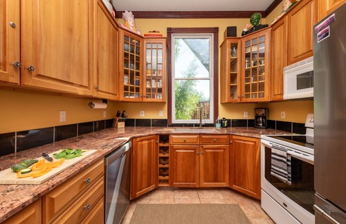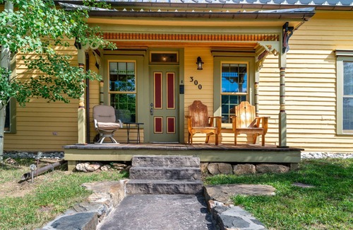 This property was built in1869 and was the St. Luke’s Hospital for a short time. It was in terrible shape when we purchased it so unfortunately nothing could be salvaged in the interior of the house but most of the exterior is original. We purchased the home in 2003 and completely remodeled the interior with all modern conveniences. There are three comfortable bedrooms. The bathrooms are one full with a claw foot tub and a half bath off the master bedroom. The kitchen is fully equipped that any cook would enjoy. The large patio outside has a great sitting area to relax and appreciate the view or you can sit on the front porch among the Aspen trees.