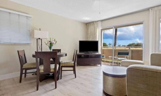 Step into a world of relaxation, surrounded by swaying palm trees and vibrant hibiscus blooms. Your spacious suite features a full kitchen, separate living room, and private lanai. Refresh yourself in our sparkling outdoor pools, perfect for relaxation or family fun. Unwind in the soothing hot tubs while gazing at the starry Hawaiian night sky for ultimate relaxation. Offering family-friendly amenities and a convenient location, we provide the ideal home-away-from-home for your Hawaiian getaway.