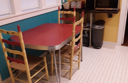 Like most older homes in Bisbee, this home is quaint with several modern updates thoughtfully made by the previous owners. A covered screened porch greets guests as they make their way back from the adventures of the day. As you enter the home an eclectic blend of modern meets vintage. The kitchen provides all you need to prepare a 4 star meal... if you brought along, or are a 4 star chef. Keurig, toaster, microwave and Cuisinart cookware will help make your stay more practical. Both bedrooms are equipped with a full bed each. Not a queen. Both beds are full beds. The beds came from Aunt Cissie's boarding house out of Kokomo Colorado (no longer in existence). Aunt Cissie's sister, Helen, was the mother of Clarence Malley, a one time Police Chief here in Bisbee. The bathroom features a granite countertop and a walkin shower, sorry no clawfoot tub, but just as effective. Last but not least...almost no stairs and a convenient store across the street.