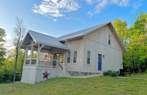 We are located 3.7 miles down a maintained dirt road, a peaceful drive in the country! Our getaway is situated on 14 acres of wooded land, sitting beside a springtime running stream! Our guests are welcome to explore our property and enjoy the creek! We have a fire pit for you to enjoy as well as a grill on the patio! we provide firewood for our guests!