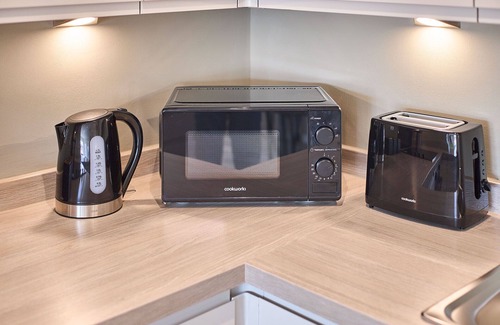 This stylish 2-bedroom, 2-bathroom flat is perfect for groups of up to 6. It features a sleek, open-plan living area with modern décor, plush furnishings and natural light. The spacious bedrooms offer luxurious bedding and storage, while the high-end bathrooms include a rainfall shower and bathtub. A fully equipped kitchen and cozy lounge with a sofa bed, smart TV, and Wi-Fi ensure comfort. Conveniently located near attractions and transport, it's ideal for business or leisure stays.