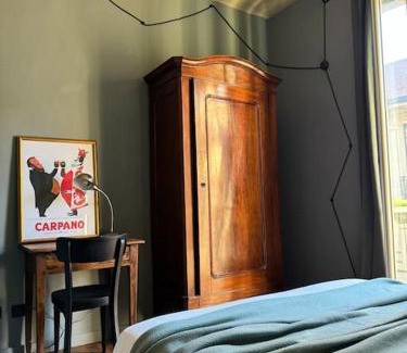 Food & DrinkTea/Coffee makerBathroomShower, Toilet paper, Hairdryer, Free toiletries, Towels, Shampoo, Private bathroom, Toilet, Body soapMedia & TechnologyTV, Flat-screen TVGeneralFire extinguisher, Heating, Hardwood or parquet floors, Air conditioning, Trash cansKitchenCoffee machine, Electric kettle, Dining table, Washing machine, Stovetop, Refrigerator, Kitchenware, Oven, Kitchen, KitchenetteLiving AreaSofa, Sitting area, Dining areaViewCity view, Quiet street viewBedroomChildrens' cribs, LinensAccessibilityUpper floors accessible by elevatorBuilding CharacteristicsPrivate apartment in buildingRoom AmenitiesFold-up bed, Sofa bed, Socket near the bed, Drying rack for clothing |