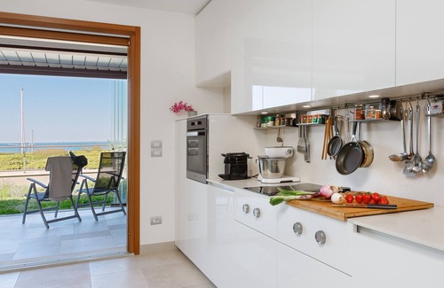 The open space kitchen, modern and fully equipped, opens onto the living area in a fluid embrace of spaces, ideal for those who love to experience home as a shared, emotional environment.
