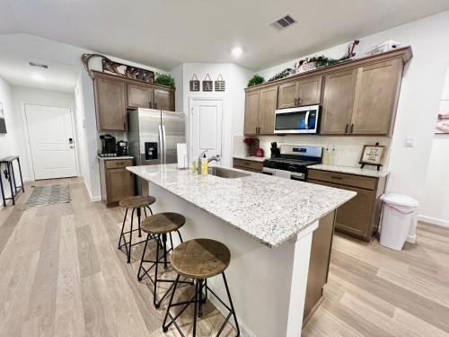 GIG 'EM LANE - 3 Bed, 2 Bath Home offers accommodations in College Station, 6.3 miles from Texas A&M University and 7.3 miles from Bonfire Memorial. The vacation home, set in a building dating from 2025, offers free Wifi and free private parking. Veterans Park and Athletic Complex is 5.7 miles away and Olsen Field at Blue Bell Park is 6.6 miles from the vacation home. The vacation home is composed of 2 bedrooms, a fully equipped kitchen, and 2 bathrooms. A flat-screen TV is offered. The accommodation is non-smoking. Wolf Pen Creek Amphitheater is 4.7 miles from the vacation home, while Wolf Pen Creek Park is 4.7 miles from the property. Easterwood Airport is 6.8 miles away.