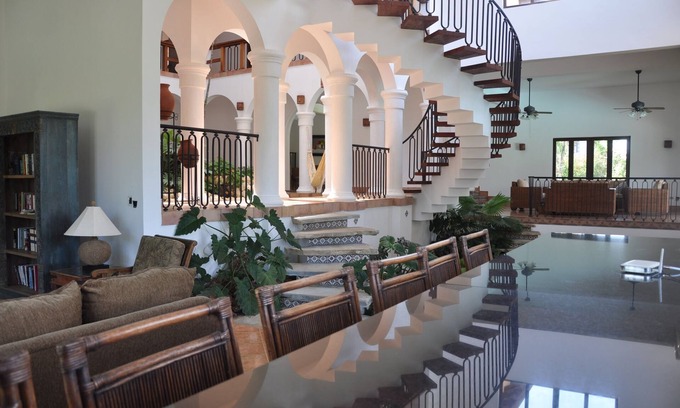 This is an enormous villa, hacienda style, with an amazing internal courtyard and waterfall, private pool and huge outdoor private park ornamented by all type of flowers and fruit trees (mango, tamarind etc.)