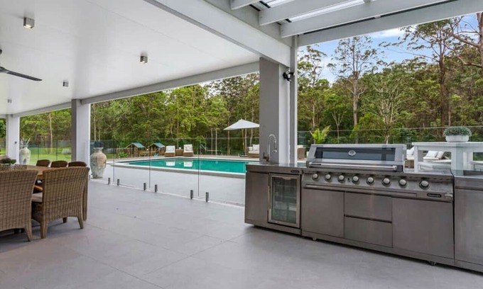 This home is set in a fantastic tranquil location and is a gorgeous home-away-from-home. A wonderful choice for a large family (or two) or a professional group of friends looking for a relaxing, luxury retreat within 30 mins to Broadbeach.