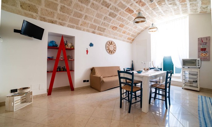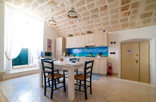 Located in the old town of Monopoli, just steps from everything. A strategic location to experience the city and explore the surrounding area. The Old Port and seafront promenade are just a 2-minute walk away. Cala Porta Vecchia beach is only 5 minutes on foot, while Carlo V Castle is 4 minutes away. The Cathedral of Monopoli is just 3 minutes from the apartment, and the local covered market with shops is about a 6-minute walk. The train station is reachable in 15 minutes on foot or 5 minutes by taxi.