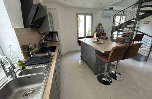 All-inclusive cottage (energy charges, sheets, towels and end-of-stay cleaning). Immerse yourself in the serenity of our cottage in Evecquemont, nestled in a peaceful village on the edge of the Vexin nature park. Just 1,700 meters from Vaux-sur-Seine train station, served by line J from Paris Saint-Lazare. With the on-demand transport service of the TAD Île-de-France application, explore the region with ease.